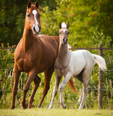 Elle nous a donné 3 magnifiques poulains à qui elle a transmit son type et son raffinement. C'est une très bonne mère.